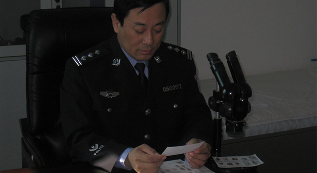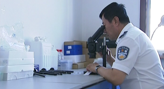 马忠钰与同事研究物证