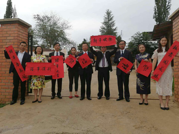 除夕前一天,中国援莱索托第13批医疗队队长李进,携全体队员在营地捧着大红的对联拍照,并在朋友圈拜年。
