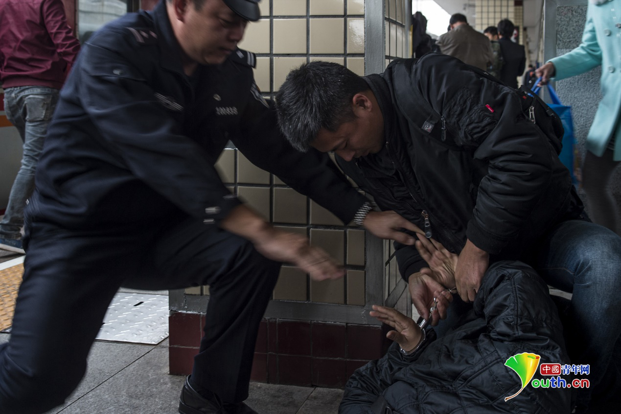 宋鹏飞与车站民警对嫌疑人实施抓捕。长沙铁路公安处 毛继前 摄
