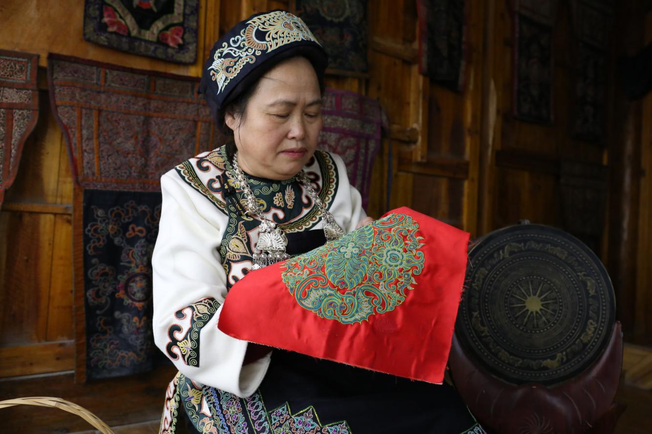 为了留住民族文化的根,宋水仙开始收集各种老绣品。