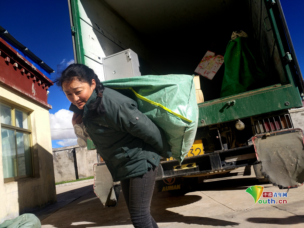 益西卓嘎将邮件从邮车上卸下。本人供图
