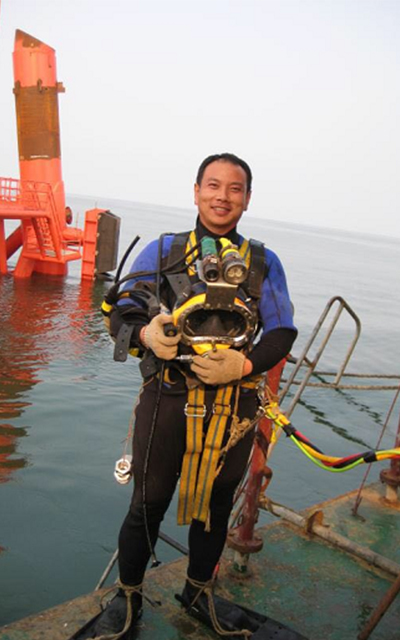 “为了和国际化接轨,我们原来也想找几个高校毕业生,但一听说这么危险,基本上都打退堂鼓了,理由是,‘我一个月在哪儿挣不了几千块钱,非要干这个?’”说起这个,楚金勇有些无奈。在中海油工作的十几年间,不少同事也转行去经商,去从事旅游潜水等工作,也有一些公司向他发出诱人的邀请,但他始终不为所动,一直坚持了下来。“我觉得我有责任在身。潜水这项工作对于海上施工作业来说非常重要,必须要有人做而且要做好。”