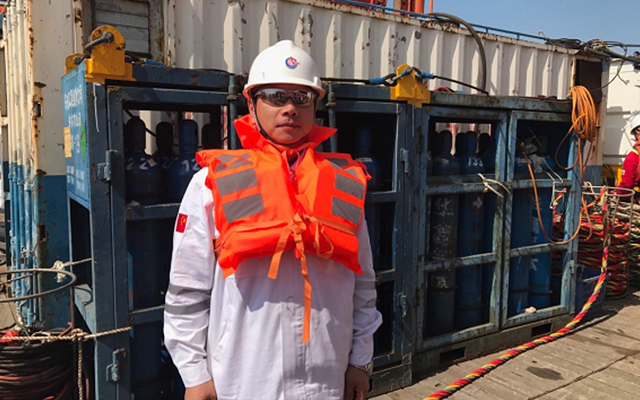 与海面上的作业不同,水下作业海底管线交错、海况复杂,潜水员下潜时都需携带一根脐带管线,多人作业易交缠碰撞,通常只能潜水员独自一人下水单兵作战。再加上渤海湾表层地质主要由淤泥构成,在风和浪的影响下,容易降低海底能见度,在海下伸出手,都看不见手套,更增加了这项工作的难度和危险性。楚金勇曾在青岛某潜水部队服役八年,这段军旅生涯让他不仅胆大心细、技术过硬,还能吃得了苦。