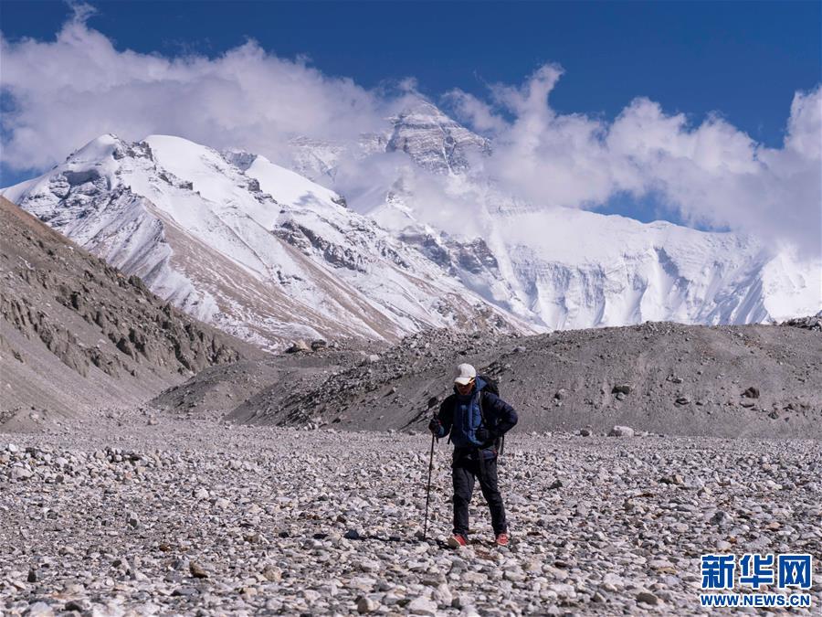 刚刚完成高海拔运输任务,返回大本营的登山向导索朗次仁(4月26日摄)。新华社发(孙非摄)