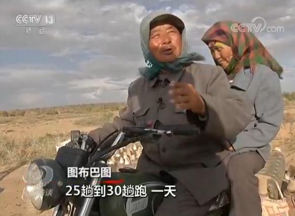 在恶劣的自然条件下为了能让长出的幼苗存活,夫妻俩必须要到30公里外的深井打水,光是运水,图布巴图就骑坏了好几辆摩托车。现在,图布巴图换了辆大摩托车并做了改装,一次就能挂载48个水桶。