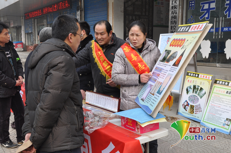 2013年李彦陈红夫妇在街头向过往的群众宣传禁毒知识。本人供图
