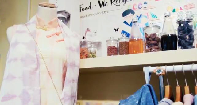 张骏霖用厨余垃圾提色染制的旗袍(视频截图)