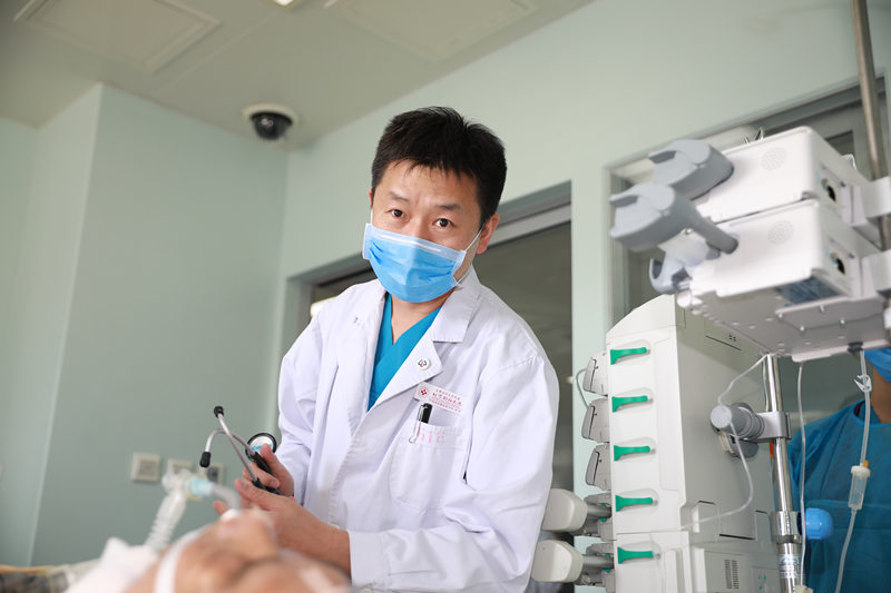 下午5点, 孙兵详细评估ICU中一名患者情况后,认定其气道管理存在一定难度,气管切开能够有效解决痰液引流等气道管理问题。虽然有专家共识建议为避免医护人员感染尽可能不做气管切开操作,但为了患者能够得到更有效的救治,孙兵还是亲自为一名患者采用微创经皮穿刺技术进行了气管切开。之后,他又为另两位患者也做了气管切开。