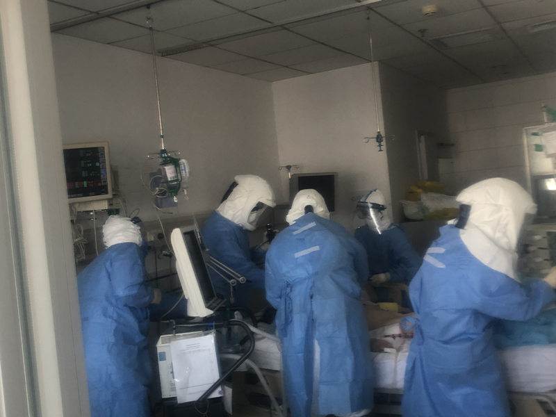 孙兵开始夜以继日地冲锋在一线,与死神“角力”。每天早晨,孙兵早早就坐在查房室开始查房,从呼吸机机械通气策略到ECMO并发症的预防,从抗生素的选择到出入量目标管理,从镇静镇痛到血栓预防,从营养支持到血糖控制,孙兵为每一名患者制定了全面而细致的治疗方案,同时,根据每名患者不同情况提出明确而严格的目标要求。查房后,他依然要穿上防护服进入隔离病房进行查体、吸痰和具体指导,直到下午1点左右才能出来吃午饭。下午3点与专家讨论结束后,再次进入隔离病房,查体、吸痰、操作,检查治疗方案是否落实、目标是否达到,直到晚上8点多才出来。晚上9点多回到酒店后,他的工作尚不能结束,他还要总结、反思患者的各项治疗与效果。