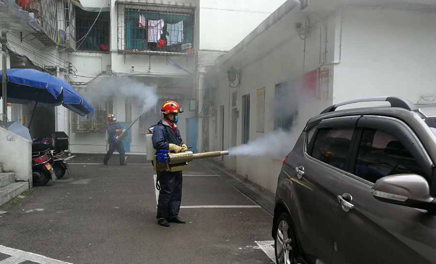 根据疫情防控的需要,张芳林的足迹从贵阳市中心城区扩展到了周边的花溪区、清镇市、修文县,他与队友一道为医院、学校、养老院、农贸市场、居民小区等超过500栋楼房义务开展消杀。