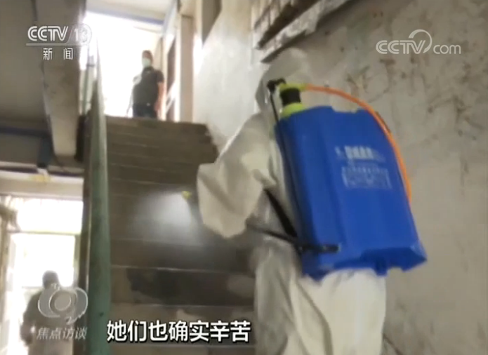 不仅是网格员的工作任务重了,社区的其他工作人员也并不轻松。疫情期间,原来负责楼道清扫工作的4名女清洁员还要承担消杀的工作,平均下来每天要负责8到9个单元,9层楼的消杀。