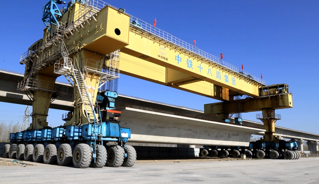 宝坻梁场提梁机正在对900吨箱梁进行运输作业