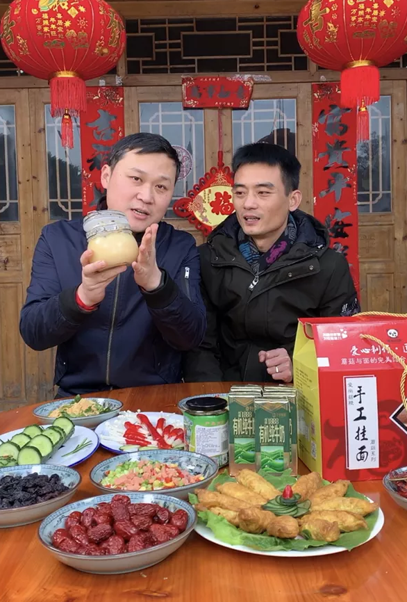 湖南城步县副县长刘书军(右)在直播间为当地农产品带货