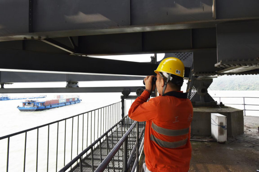 “大桥上安装了自动水位测量仪,可以实时向安全调度中心报告水位情况,我们还可以通过监控摄像头观察过往船只,发现超高超限的大型船只,要立即用喇叭呼停,防止撞上大桥钢梁。”面对连日来大雨引发的洪水,党颉明和工友盯守在大桥上,发现安全隐患要及时启动警报系统。