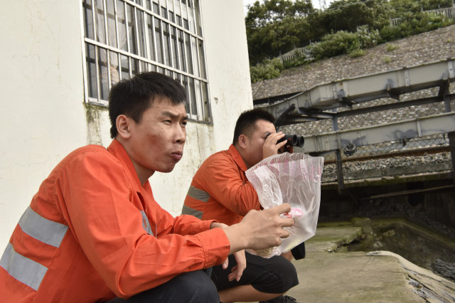 拦停船舶需要使用大功率喇叭向船只喊话,受持续暴雨和使用过频影响,导致喇叭日前出现了一次故障,党颉明和工友冒雨进行了换修作业,确保喊话喇叭24小时全天候不“失声”。