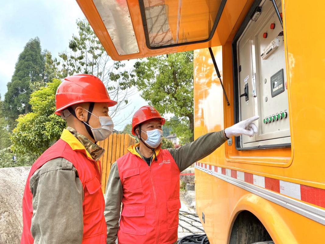两个小时后,郑国标出现了。他把车停在路边,背上几十斤重的抢修工具,蹚过齐腰的洪水进到村里。等问题全都排查完,村里重新通了电,已经是晚上8点多。
