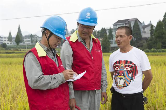 2017年9月22日,郑国标(左二)服务三农保障可靠用电