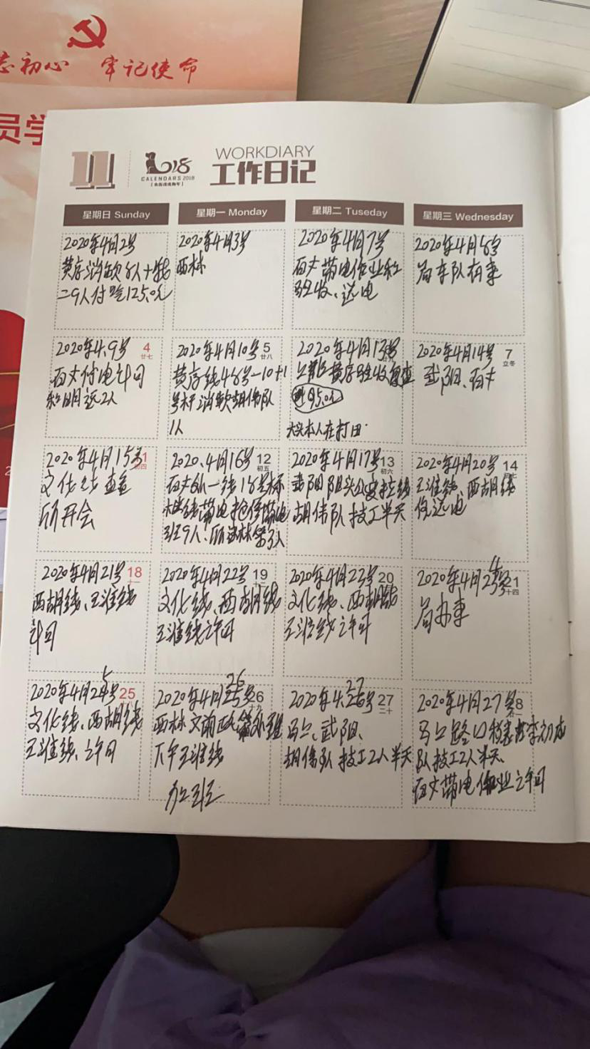 由于负责维护和抢修的线路多,郑国标养成了写工作日记的习惯。他习惯每天早上6点多到单位,把要做的事整理记录下来。