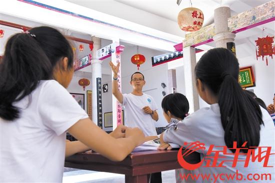 在广州市荔湾少年宫,一群10岁左右的学生和一位20来岁的女孩正围坐在一幅自然山水绣布前,这位看起来成熟老练的“小老师”,正是广州女谭靖榆。她1994年出生在广绣世家,14岁开始教学生刺绣,至今已有10年。