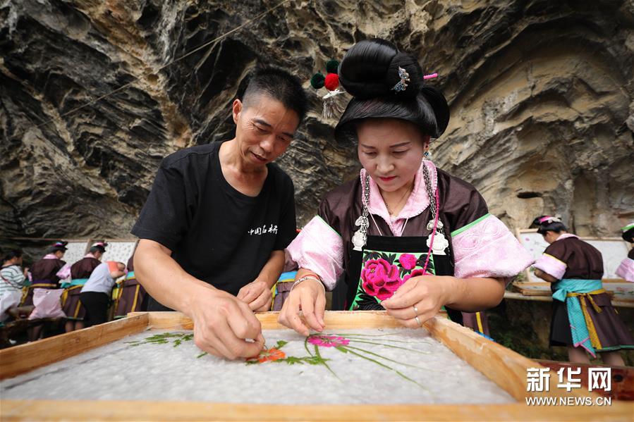 在贵州省丹寨县南皋乡石桥村皮纸作坊,王兴武在教村民制作花草纸 (2017年9月7日摄)。 新华社发(黄晓海 摄)