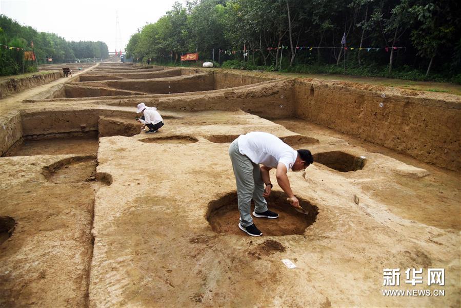 7月28日,考古工作者在对济南梁王遗址内战国时期古城遗址进行考古发掘。新华社记者 王凯 摄
