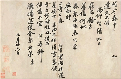 本单元重点是苏轼《新岁展庆帖人来得书帖合卷》,这是他在黄州时与好友陈季常的通信。而为了给苏轼通风报信而搭上自己前程的王诜携一卷代表作《渔村小雪图卷》出场,可以从中一窥北宋写实山水画的堂奥。苏轼经常参与驸马王诜主办的雅集,他的《题王诜诗词帖页》是为好友所写的众多题识之一。而“宋四家”中另一位大书法家米芾在《盛制帖页》中展现出他书写时恣肆淋漓的笔法。