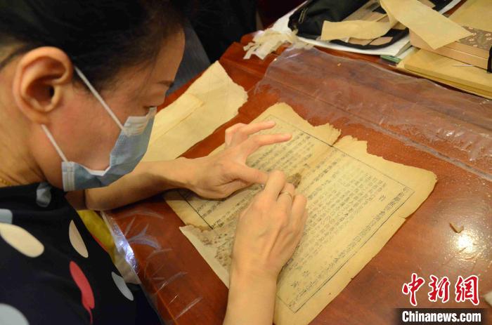修复师演示古籍书叶修复。 孙婷婷 摄
