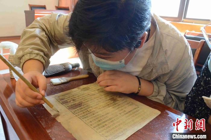9月6日,在山东省图书馆历史文献部修复室内,8名古籍修复师为市民讲解各种修复工具的用处,揭秘鲜为人知的古籍修复方法,讲述古籍装帧艺术之美。在当日举办的古籍沙龙上,市民现场体验了古籍修复技艺。