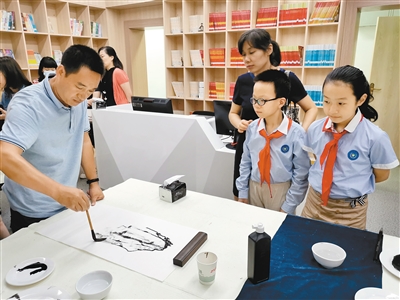 书画家走进大学南路小学。(记者 孙欢 摄)
