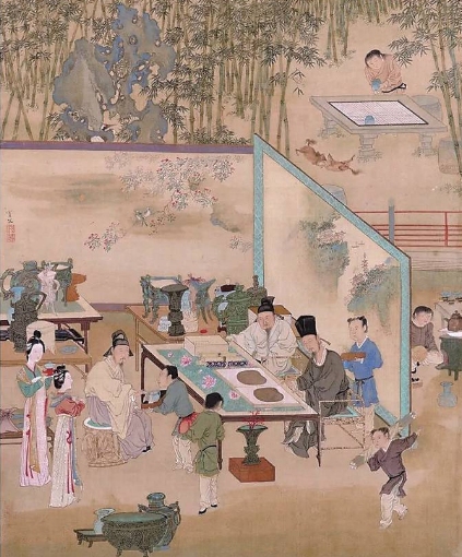 明代仇英《竹院品古图页》,追摹“东坡品古”图景