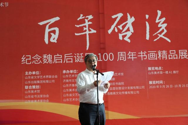 9月26日下午,作为第十三届山东国际大众艺术节的一项重要活动,“百年启后——纪念魏启后诞辰100周年书画精品展”在山东美术馆开幕。