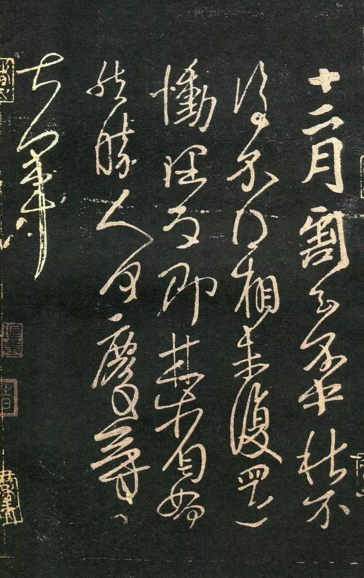 《中秋帖》 在相当长时间内曾被人们视作王献之的真迹。现在学界已经公认,《中秋帖》 并非王献之真迹, 而是北宋书法家米芾临王献之《十二月帖》 的书迹。《中秋帖》行笔痛快, 线条丰润圆熟, 笔势奇逸奔放, 连绵飞舞。