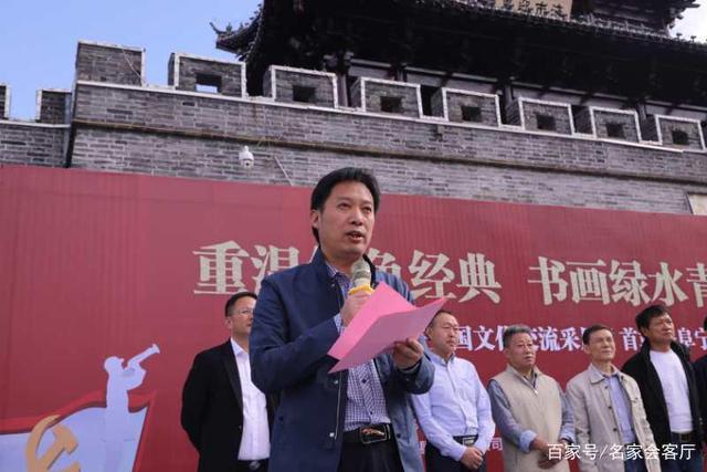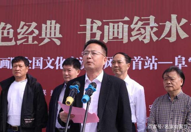 盐城市文联党组书记主席高定讲述了安徽和江苏是相连的邻省,文化、经济等许多相近,两地历史、文化有着共同的渊源等,高度评价了在庆祝建国71周年之际,以书画界民间社团组织两地首次联谊采风、首站放在阜宁举办,意义深远,并鼓励两地书画家要加强多交流、多创作歌颂党、歌颂社会主义的正能量作品,为建设社会主义新时代多做贡献。同时表扬江苏企业家对家乡情节的感情,并表示称赞画院理事长多次组织两地书画交流活动,理事长对书画艺术的普及、发展与繁荣全力以赴、鼎立支持、功不可没。最后高主席祝贺本次“重温红色经典 书画绿水青山”活动圆满成功。