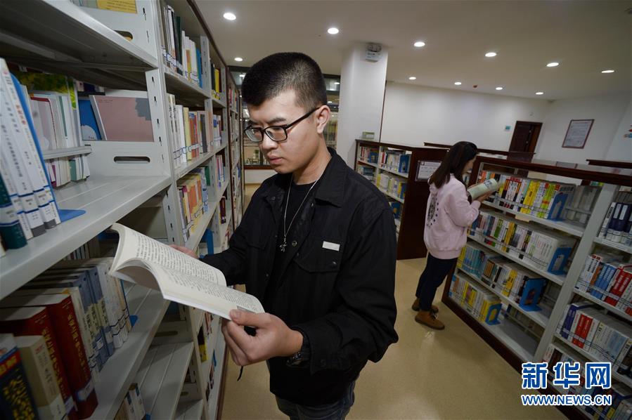 10月13日,读者在贵州省遵义市播州区图书馆挑选书籍。 为满足群众日益增长的精神文化需求,贵州省遵义市播州区投入3000万元在城市中心的南白公园修建了播州区新图书馆。新馆于2016年10月开馆,馆内开设了期刊阅览室、视障读者阅览室、电子阅览室、地方文献室等服务窗口及体验区,启用了多种智能化管理设备。截至目前,该图书馆已接待读者64万余人次。 新华社记者 杨楹 摄
