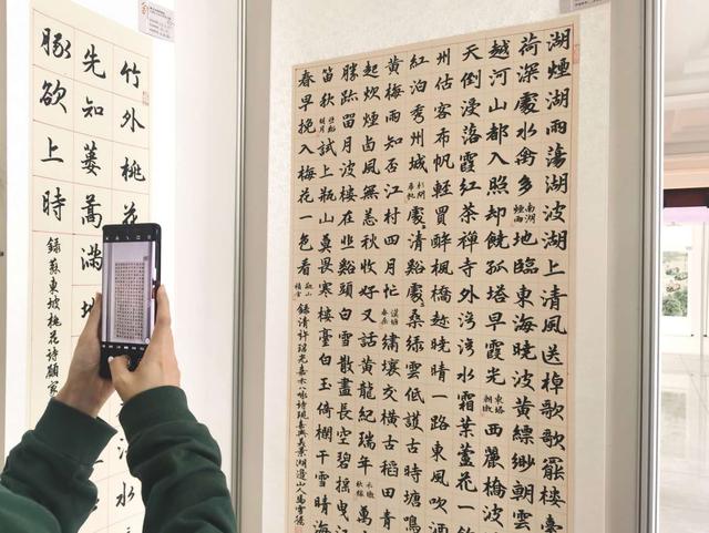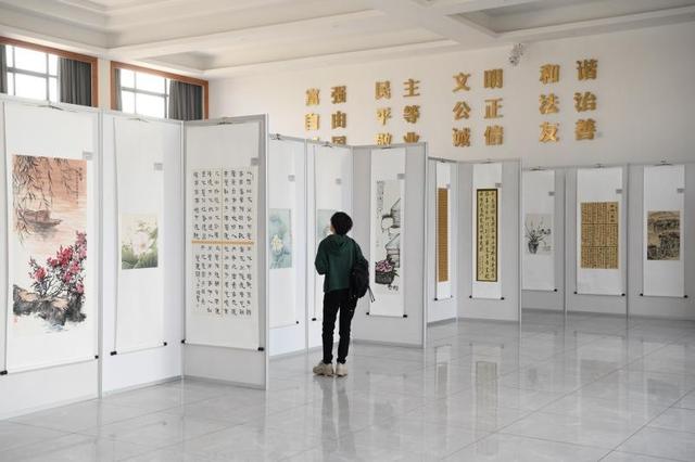 “能在家门口这么近距离欣赏书画家的作品,真的太好了!”曹王村村民张美容和邻居们一起来观看巡展,激动不已。他们就住在曹王村文化礼堂边上,第一次享受到专门为他们准备的书画展。