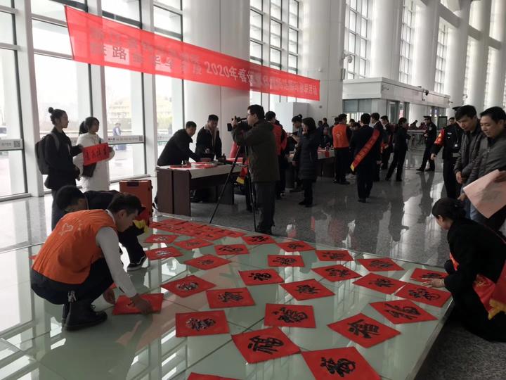 春运首日,走进火车站开展写福字、送春联活动