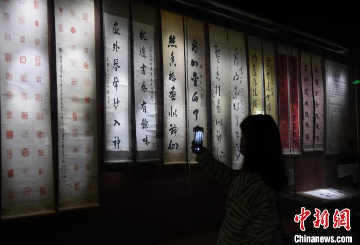 图为精美书法作品吸引市民驻足拍照。 周毅 摄