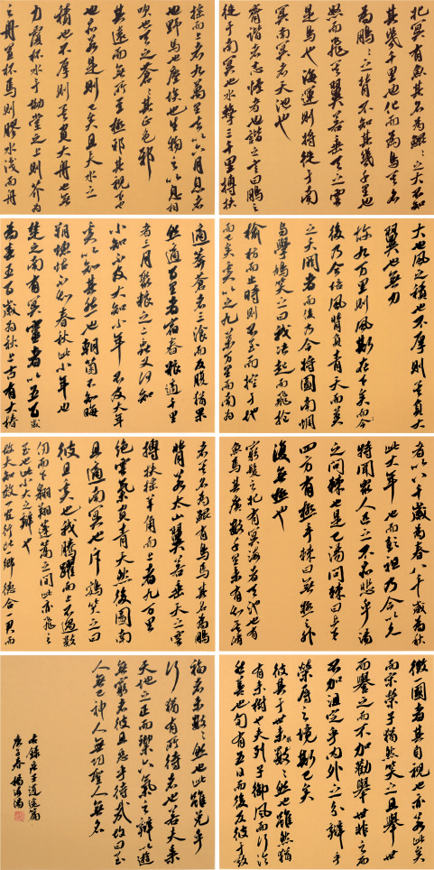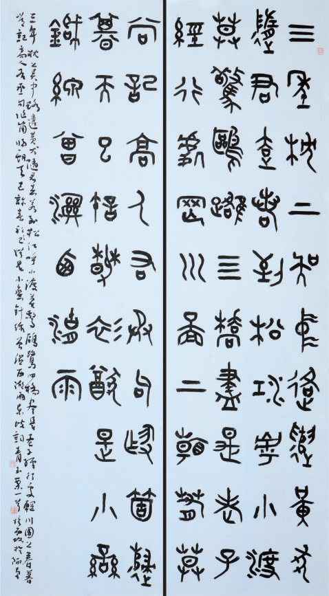西泠印社社员、孔孟书画院院长郑志群的《篆刻作品》在此次参展作品中别具一格,据介绍,印屏上的“驽马十驾,功在不舍”诠释了坚持不懈的时代精神,在“二十四节气”印章中,将每个节气的篆刻与古代经典诗词相结合,更是对传统文化的另一种继承与创新。“篆刻‘惊蛰’印章时,正值疫情期间,精选诗句‘膏泽且为喜’相呼应,既贴合节气描写了农耕的景象,又以艺术手法表现了面对疫情时人们对生活的期许,感染力更强。”郑志群表示,西泠印社全国共有400多人,仅济宁就有6人。“天下汉碑半济宁”,得天独厚的优势,让金石文化根植于济宁这块肥沃的土壤当中。篆刻不仅赋予了传统文化新的活力,也在不断创新中将优秀传统文化更好地传承下去。