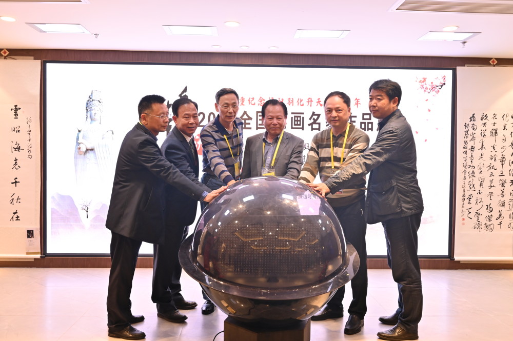 原莆田市委副书记、中国书法家协会会员、福建省书法家协会常务理事蔡尔申,原莆田市委常委、中国书法家协会会员、福建省书法家协会理事祁永信,湄洲岛管委会主任林锋,中国书法家协会会员、莆田市人大常委会秘书长、人大书画院常务副院长陈建舜,湄洲妈祖祖庙董事会董事长林金赞,莆田市文联副主席、莆田市书法家协会主席张煌,一同为书画展按动启动球。