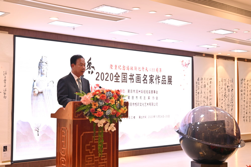 祁永信在致辞中说,我国的书画艺术历史源远流长,博大精深。书画艺术不仅感发人心、陶冶情操,还可以净化心灵、提高素质。“瓣香湄洲”2020全国书画名家作品展,以书画的形式弘扬妈祖精神,讲好妈祖故事,传播妈祖文化,是一件极具意义的文化盛事。作品展的成功举办,进一步弘扬了中华民族优秀文化,展示了书画家们积极向上、奋发有为的精神风貌,为妈祖书画艺术走向世界打下良好的基础。