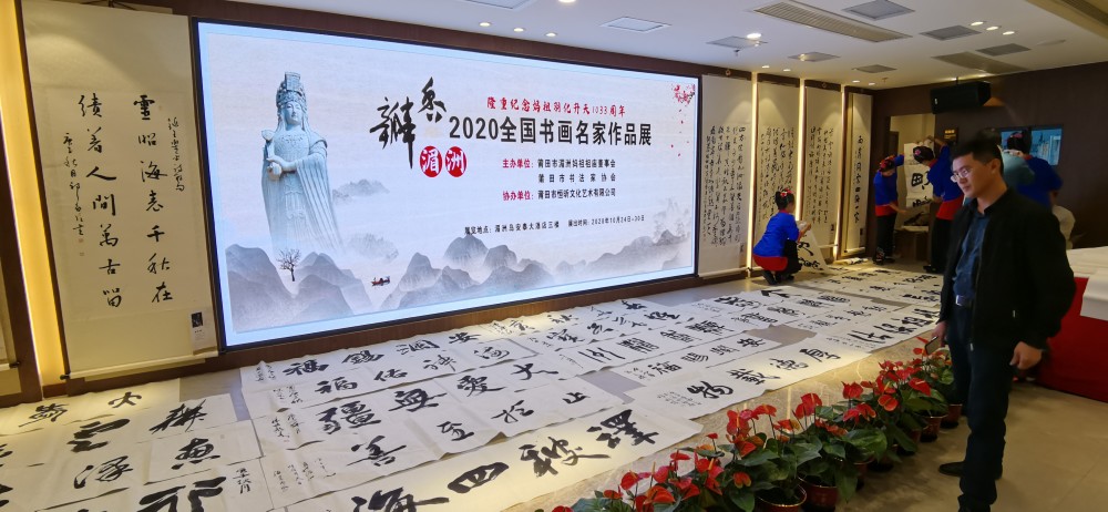 台海网10月25日讯 福建日报APP—新福建报道 24日下午,由湄洲妈祖祖庙董事会、莆田市书法家协会主办的“‘瓣香湄洲’——2020 全国书画名家作品展”在湄洲岛举行。此次作品展也是纪念妈祖羽化升天1033周年的一项重要活动,现场展示了100多幅书画精品,并举行书画笔会,带来了一场别开生面的书画艺术盛宴。