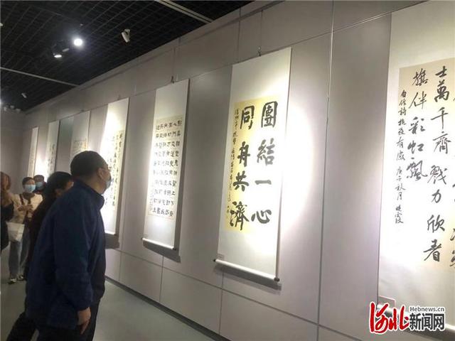 “戮力同心 众志成城”沧州市抗击新冠肺炎疫情书画篆刻摄影展开幕现场。河北日报记者王雅楠摄