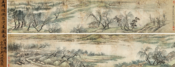 该专场另有王翬《湖庄清夏图》卷,乃其小青绿山水之精品,原为吴士鉴、“渊雷室”主人严昌堉旧物;王武、钱谦益、魏禧《扶母看花图》款,集结了三十九家题跋,实为历史忠孝节义之典范。