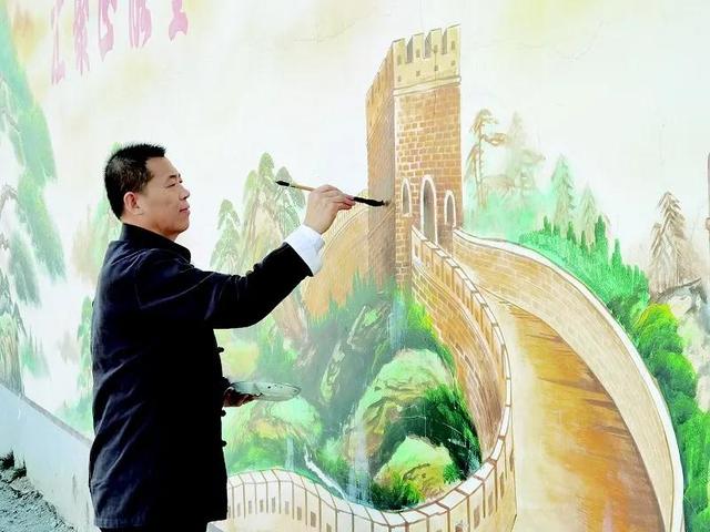 任谁也不会想到,这幅接地气的乡村作品是王学文在没有图纸的情况下,徒手直接墙绘的。
