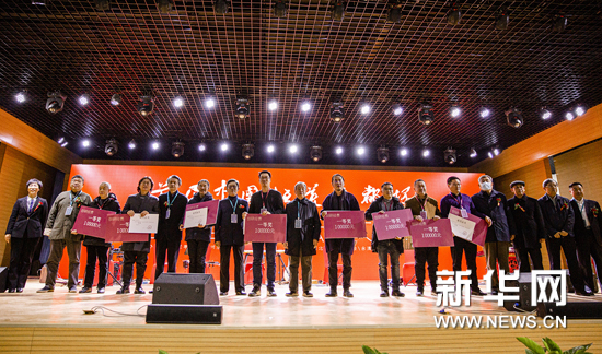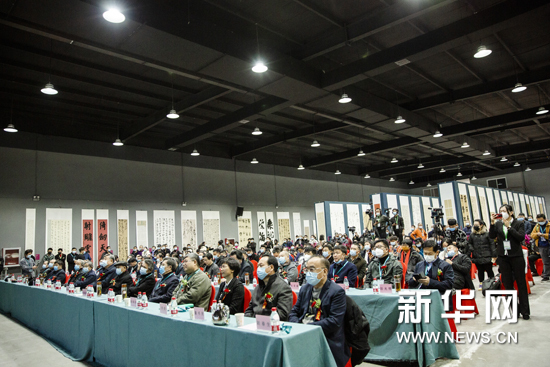 此次开幕式在“闻风现代民乐团”音乐家们演奏的传统民族乐合奏中拉开序幕,获奖名单由本次大展的监审委员会主任申万胜宣读,中国书协副主席刘洪彪,大展评委会执行主任张旭光等分别在开幕式上致辞。一、二、三等奖的获奖作者分批次上台领奖,一等奖创研费10万元总计10名,二等奖5万元总计20名,三等奖1万元总计40名,意在鼓励获奖书家能对书法的创作与研究投入更大的激情!在开幕舞台之上,由张旭光先生题写的“首届中国恒美花都杯”的展标被雕刻成立体大字,排成一排,每个字上覆盖一块红布,在主持人的宣布下,每位嘉宾以“掀起你的红盖头”的方式实现开幕剪彩,形式喜庆而新颖。本次大展共展出获奖作品70件,入展作品214件。大展的作品集也在开幕式现场同步首发,本次展览的作品集由乙庄主编,中国书法出版社出版,大八开,四色特种纸精印。