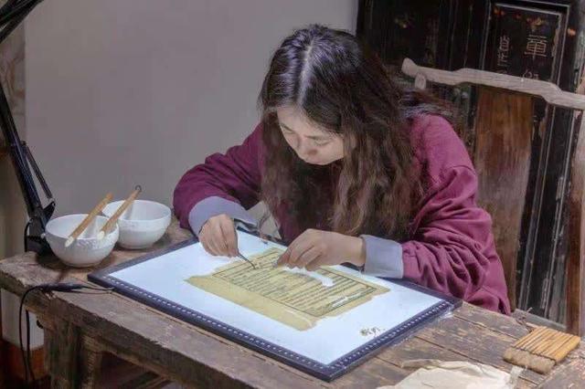 在宁波财经学院古书画修复团队中,路佳美、潘逸这样的古书画修复大学生有21名,均来自人文学院文化产业管理专业,平均年龄只有20岁。