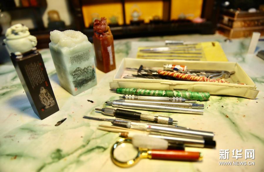 “济南微雕”山东省级非物质文化遗产代表性传承人王天明的雕刻工具(12月11日摄)。