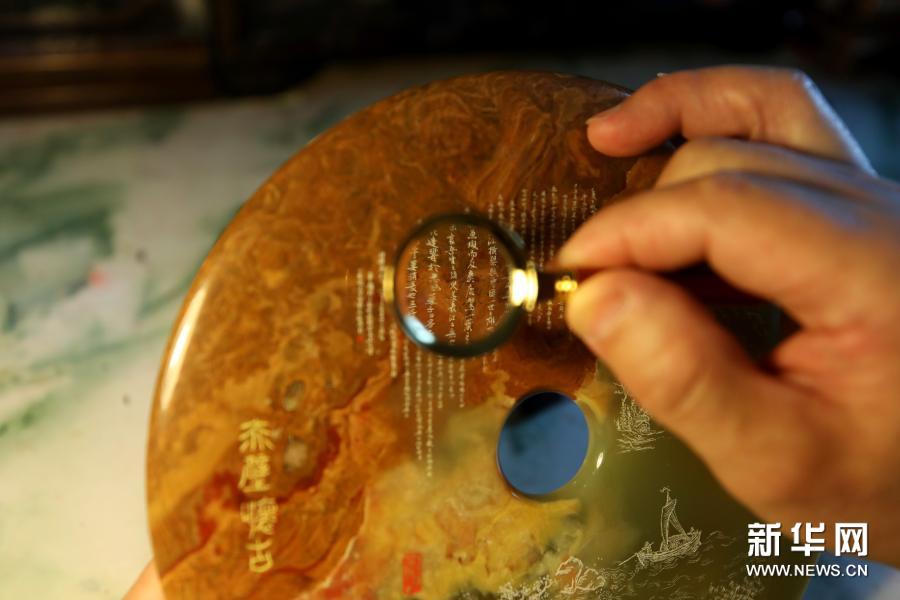 12月16日,王天明展示自己创作的微雕作品《赤壁怀古》。新华社发(赵晓明 摄)