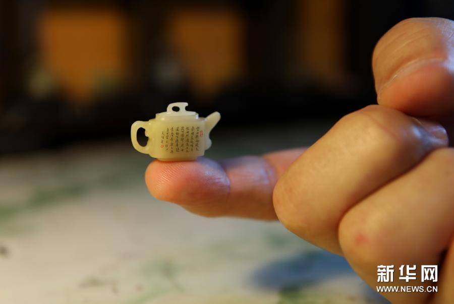 12月16日,“济南微雕”山东省级非物质文化遗产代表性传承人王天明展示自己创作的微雕作品。新华社发(赵晓明 摄)