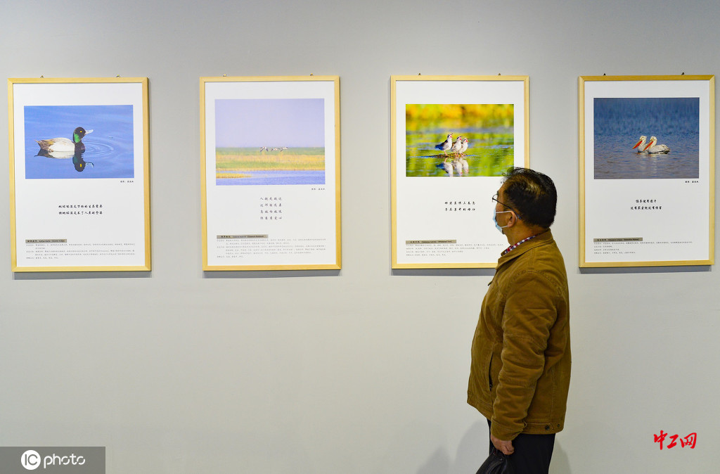 2020年12月18日,“大美乌梁素海•鸟类生态艺术作品展”在位于呼和浩特市的内蒙古自然博物馆开展。本次展览为期3个月,展出野生鸟类芦苇画265幅,野生鸟类摄影作品86幅,同时还展出了部分乌梁素海珍稀鸟类标本,让观众领略乌梁素海生态环境治理成果和碧波荡漾、百鸟竞飞的大美风光。展览由内蒙古自然博物馆、巴彦淖尔市乌拉特国家级自然保护区管理局、内蒙古乌梁素海实业发展有限公司共同主办。乌梁素海是全球8条候鸟迁徙通道中的重要节点,是重要的候鸟繁殖地和迁徙停歇地,每年有600多万只鸟类在此繁衍生息,是我国疣鼻天鹅最大的繁殖地。(王正/IC photo)